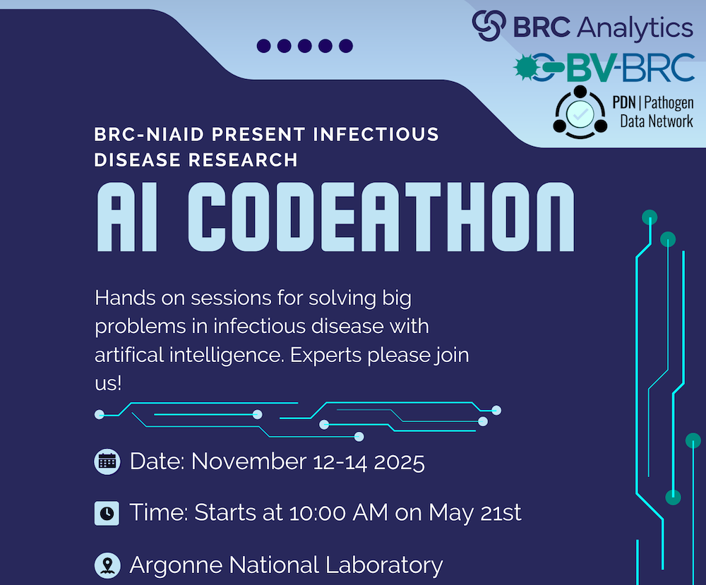 The NIAID Bioinformatics Resource Centers (BRCs) invite researchers, data scientists, and developers to apply for a three-day AI Codeathon focused on improving Findability, Accessibility, Interoperability, Reusability (FAIR-ness) of BRC data and tools using artificial intelligence (AI) and large language models (LLMs). This event will bring together participants from diverse backgrounds to build prototypes that lower the learning barrier for new users, streamline data integration, and accelerate infectious disease science.